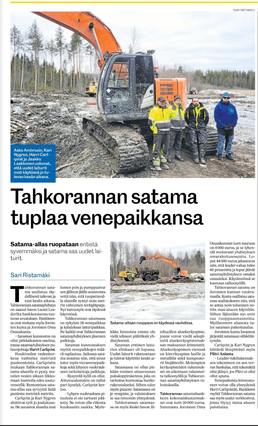 Hankkeen etenemistä voit seurata myös täällä: https://maaseutuverkosto.fi/hankkeet/tahkorannan-sataman-kehittamishanke/